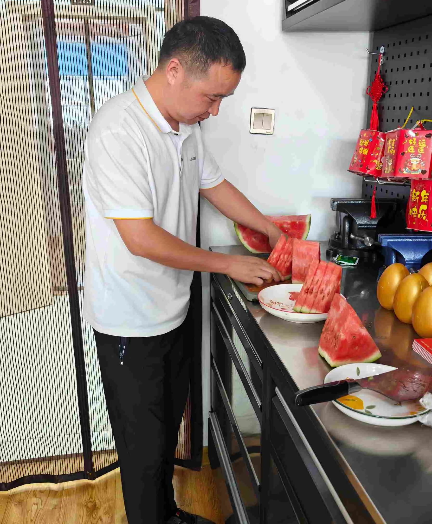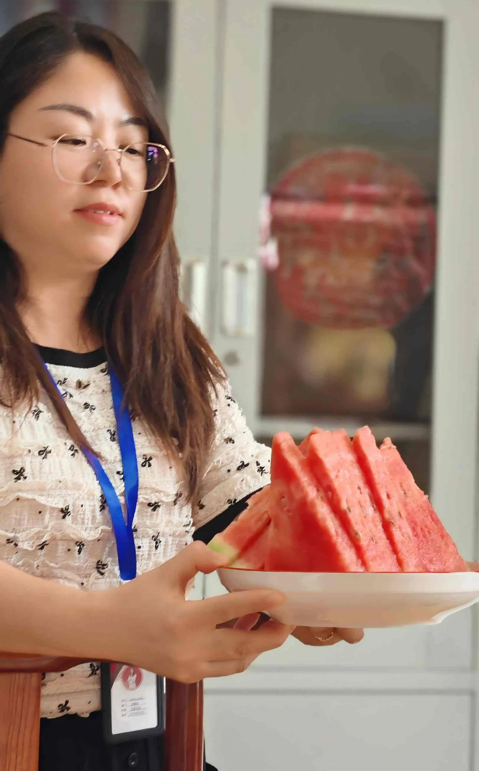 ຢູ່ສະຖານທີ່ເຫດການ, ອາຫານຫວ່າງຫລາກຫລາຍຊະນິດຖືກສະແດງໃຫ້ເຫັນຢ່າງລະອຽດ, ຕັ້ງແຕ່ຫມາກສຸກ, ຫມາກໄມ້ແຫ້ງຫວານກັບເຂົ້າຫນົມປັງທີ່ດີເລີດ. ອາຫານຫວ່າງທີ່ລ້ໍາລວຍແລະຫລາກຫລາຍໄດ້ພົບກັບຄວາມມັກຂອງລົດຊາດທີ່ແຕກຕ່າງກັນຂອງທຸກໆຄົນ. ແລະລາຍການທີ່ຈັບຕາຫລາຍທີ່ສຸດແມ່ນຫມາກໂມໃຫຍ່ທີ່ມາຈາກຕູ້ເຢັນ. ຜິວຫນັງສີຂຽວຂອງຫມາກໂມໄດ້ຖືກຫໍ່ດ້ວຍເນື້ອຫນັງແດງທີ່ສົດໃສ, ແລະຍ້ອນວ່າມັນຖືກຕັດອອກ, ນ້ໍາທີ່ຮົ່ວໄຫຼອອກມາແລະກິ່ນຫອມຫວານ Wafts ໄປຫາພວກມັນ. ມັນໄດ້ກາຍເປັນ "ເຄື່ອງມືເຢັນ" ທີ່ນິຍົມທີ່ສຸດໃນລະດູຮ້ອນ. ພະນັກງານໄດ້ນັ່ງຢູ່ໃນກຸ່ມ, ຈັບຫມາກໂມຢູ່ໃນມືຂອງພວກເຂົາແລະລົດຊາດອາຫານຫວ່າງ, ແລະສຽງເວົ້າທີ່ມ່ວນຊື່ນໄດ້ຮັບການເພີ່ມຂື້ນເລື້ອຍໆແລະຕົກ. ພື້ນທີ່ຫ້ອງການທັງຫມົດເຕັມໄປດ້ວຍບັນຍາກາດແຫ່ງຄວາມສຸກ.