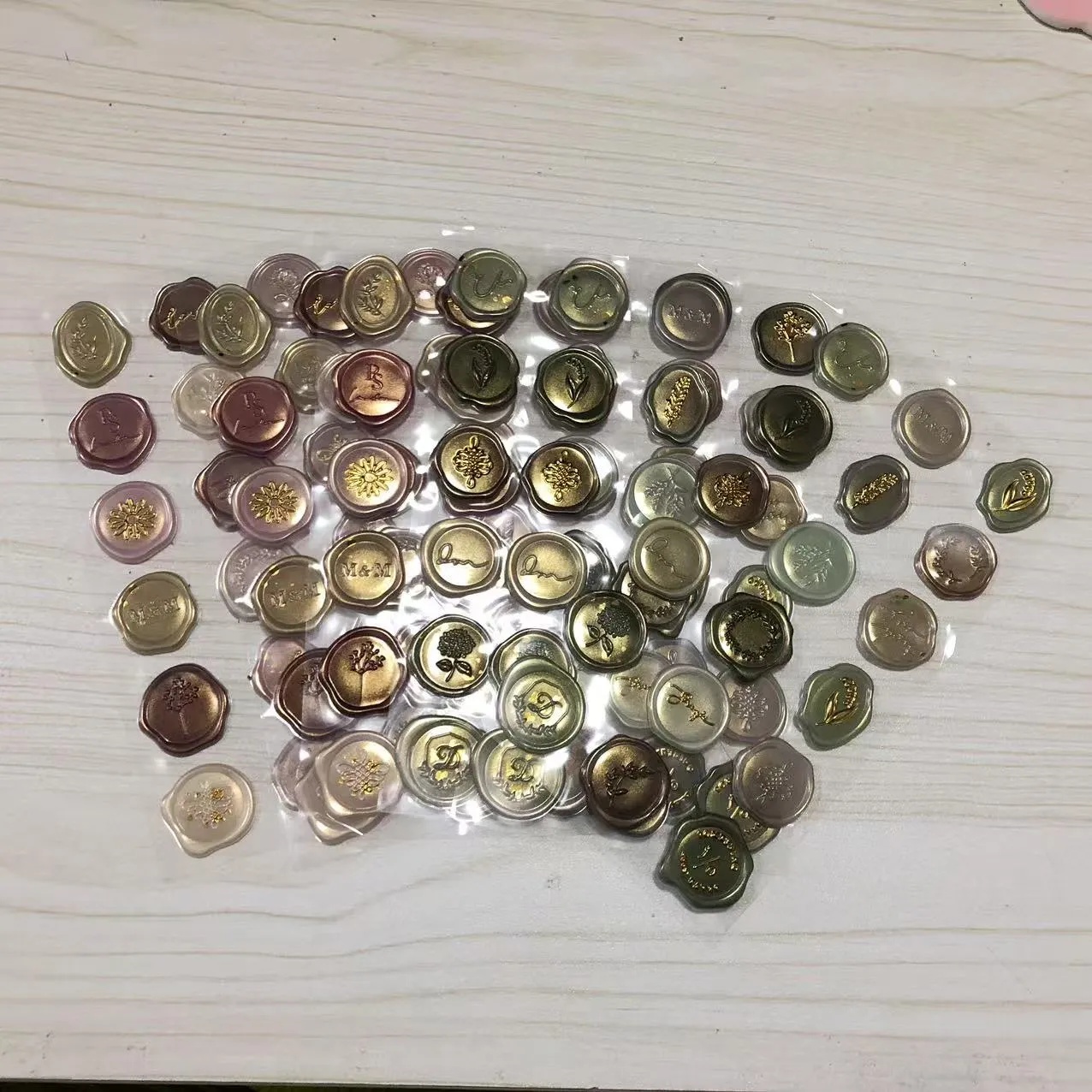 ຜະລິດຕະພັນແມ່ນມີຢູ່ໃນຄວາມຫລາກຫລາຍຂອງສະເປັກ, ມີເສັ້ນຜ່າສູນກາງຕັ້ງແຕ່ 13mm ຫາ 30mm, ແລະມາໃນ array ຂອງສີ, ລວມທັງ bronze ວັດຖຸບູຮານ, burgundy, ຄໍາ, ແລະເງິນ, ຕອບສະຫນອງຄວາມຕ້ອງການຕົກແຕ່ງທີ່ຫຼາກຫຼາຍ. ບໍ່ວ່າຈະໃຊ້ສໍາລັບການເຊື້ອເຊີນແຕ່ງງານ, ຈົດຫມາຍທຸລະກິດ, ຫຼື scrapbooking, ພວກເຂົາເຈົ້າເພີ່ມການສໍາພັດສິລະປະເປັນເອກະລັກ.